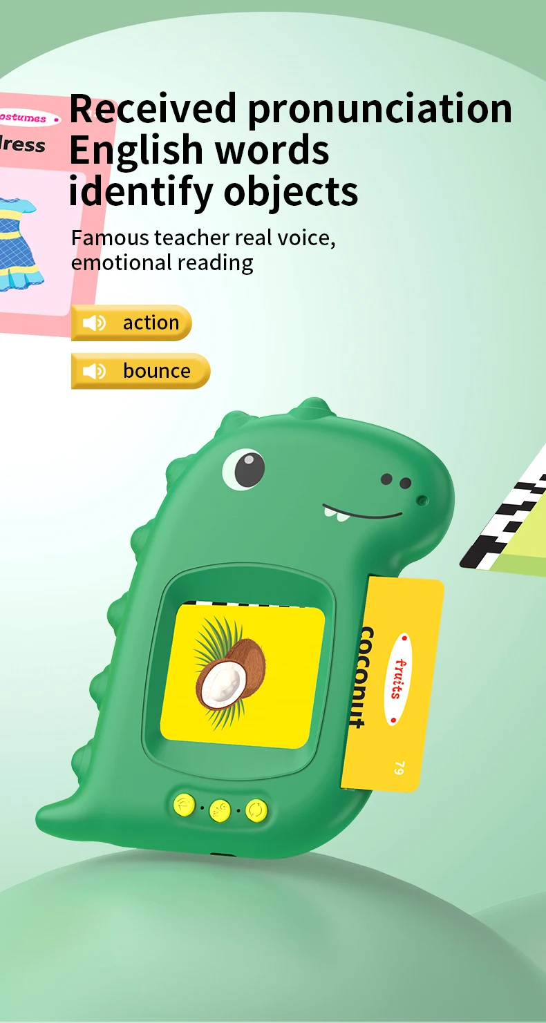š[Correct Pronunciation without Misleading]: We paid extra attention to pronunciation, we've used some native professional broadcaaster to record words for us, and chosen the most clear and suitable version for children to learn.